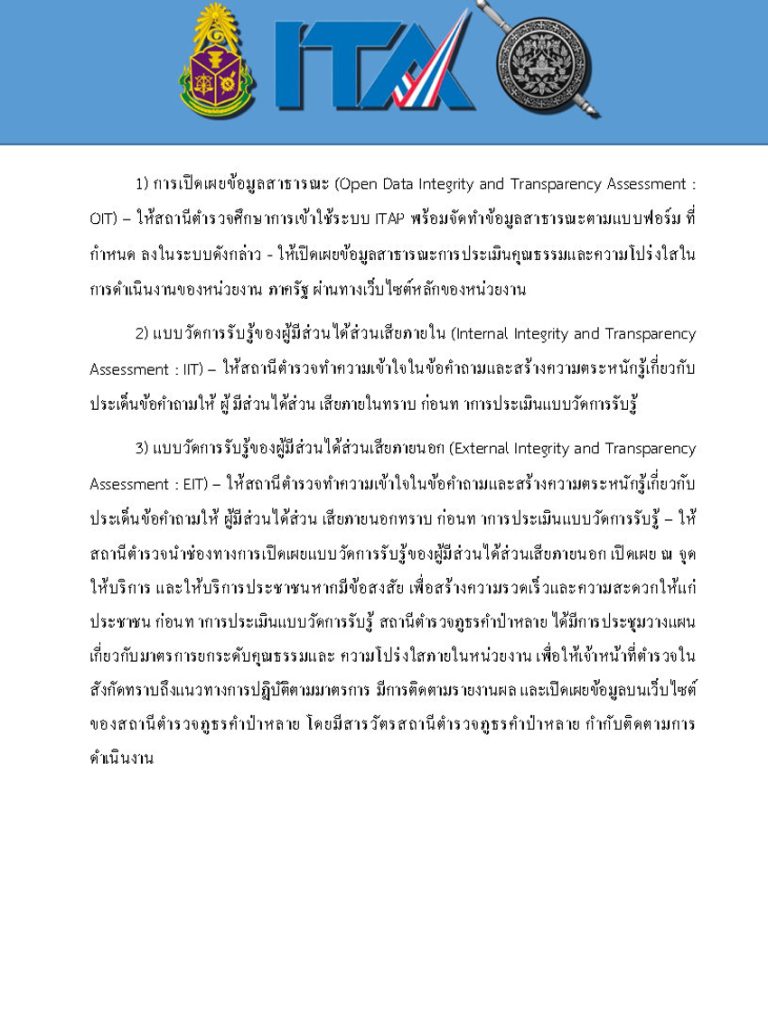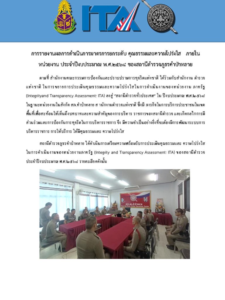 Home » มาตรฐาน ITA 2025 » ตัวชี้วัดที่ 10 การป้องกันการทุจริต » ตัวชี้วัดย่อยที่ 10.2 มาตราการภายในเพื่อส่งเสริมคุณธรรมและความโปร่งใส » มาตรการภายในเพื่อส่งเสริมคุณธรรมและความโปร่งใส » O25 การรายงานผลการดำเนินการตามมาตรการการยกระดับคุณธรรมและความโปร่งใสภายในหน่วยงาน
